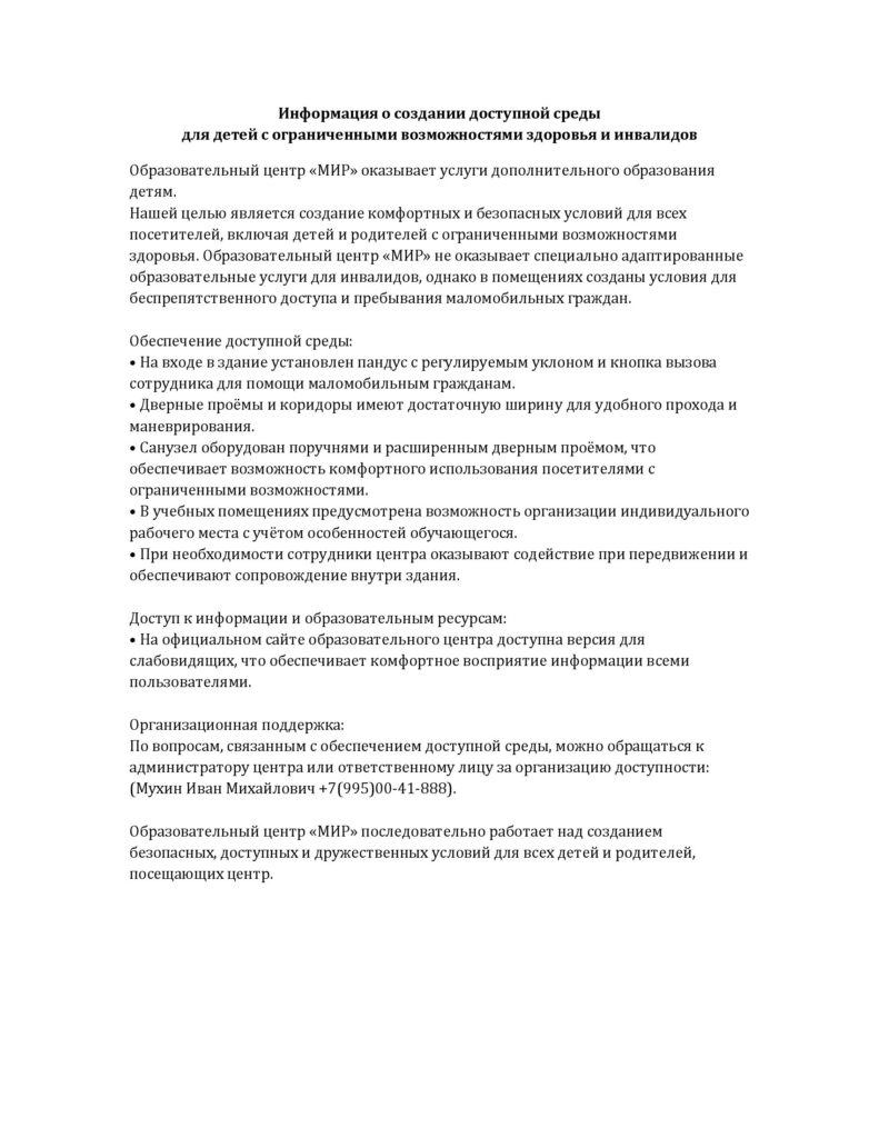 Материально-техническое обеспечение и оснащённость образовательного процесса. Доступная среда