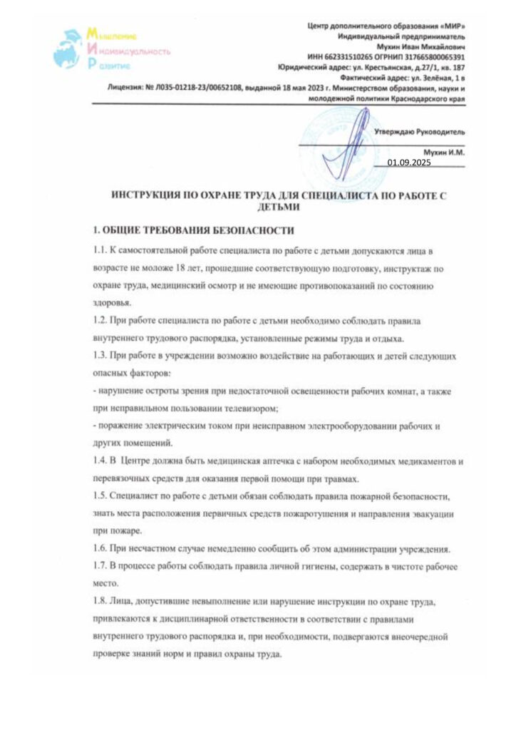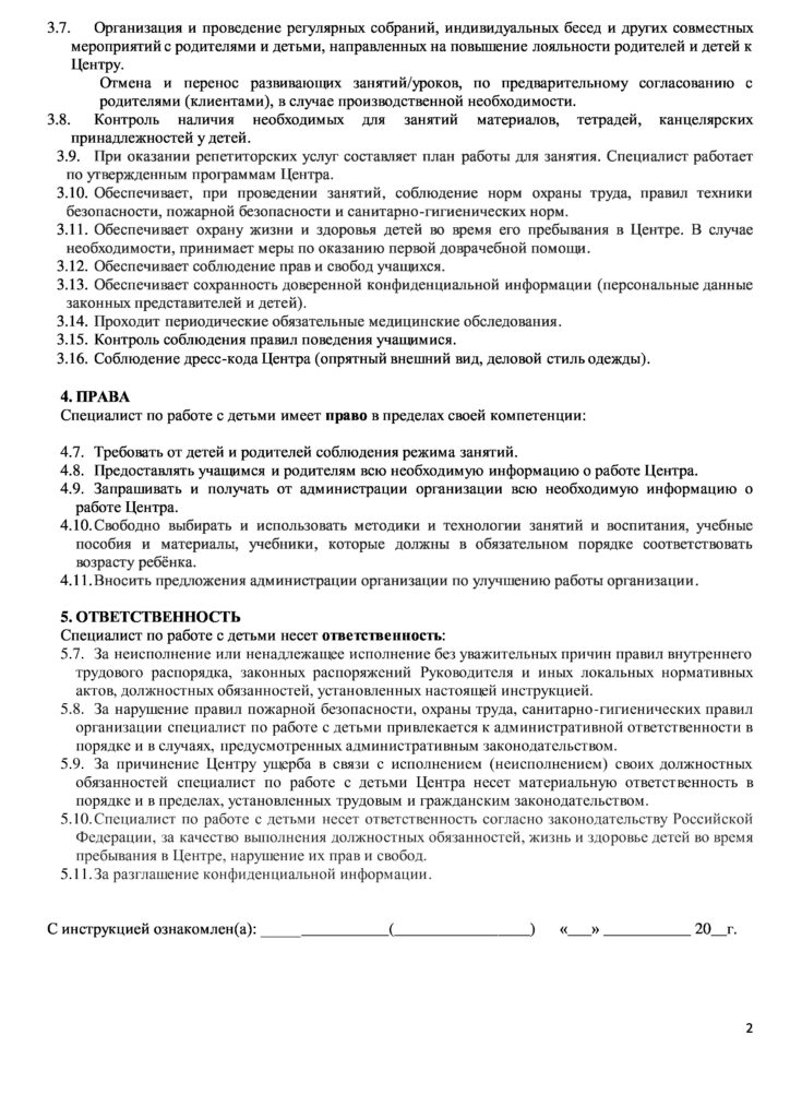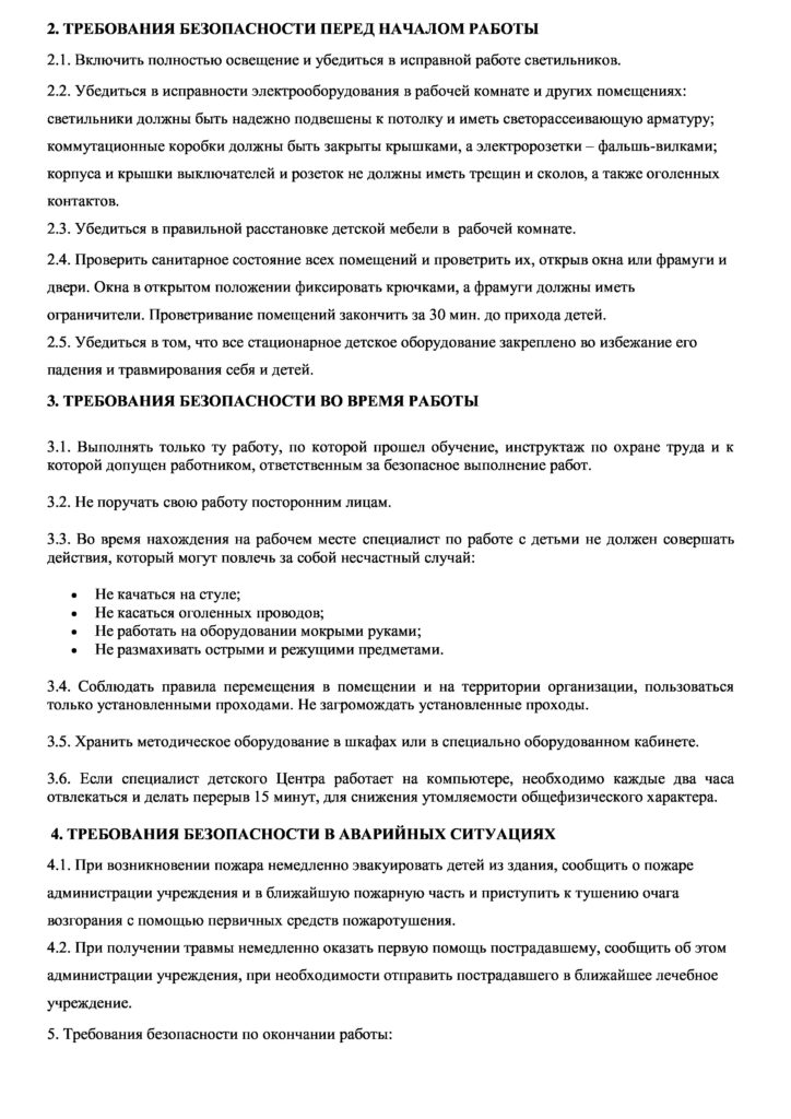 Инструкция по охране труда специалист по работе с детьми