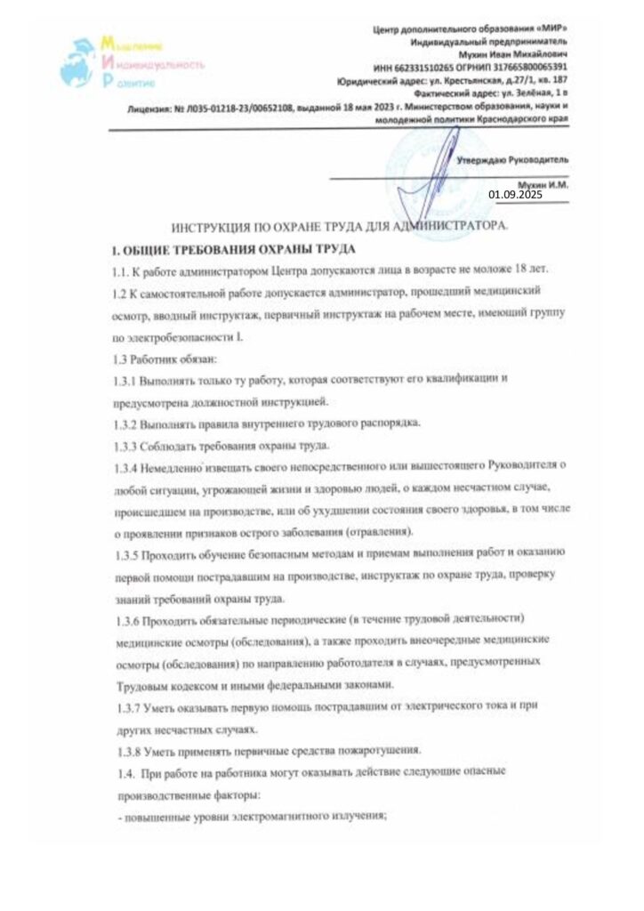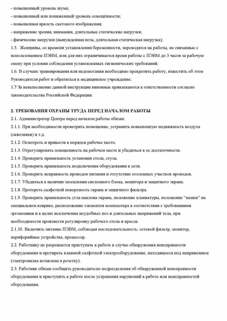 Инструкция по охране труда администратора