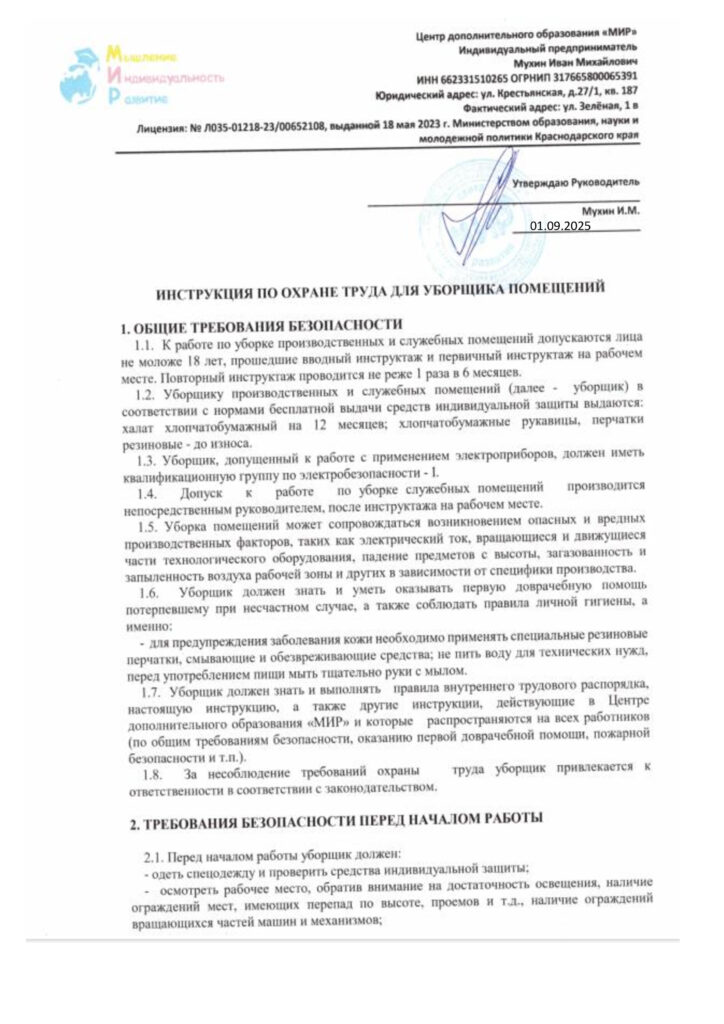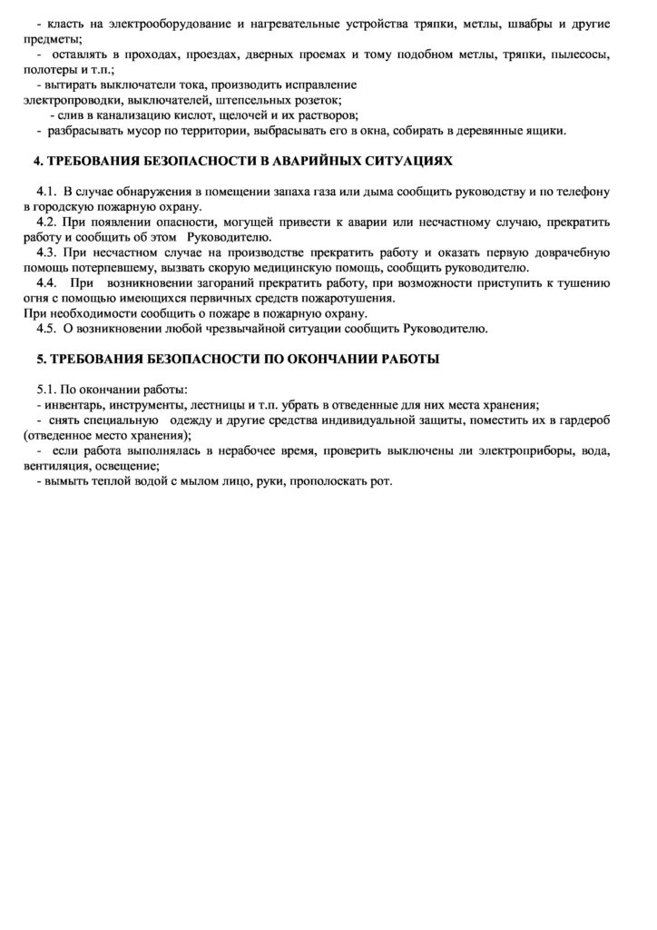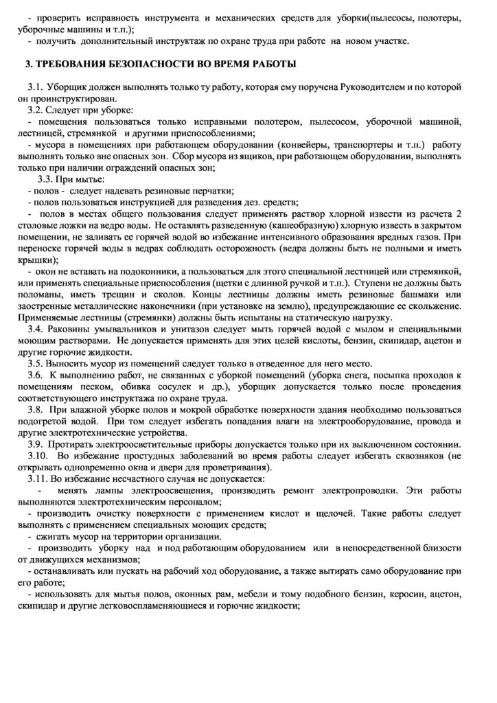 Инструкция по охране труда уборщица
