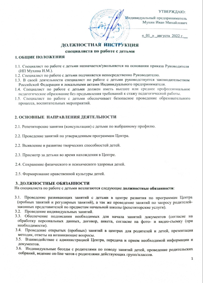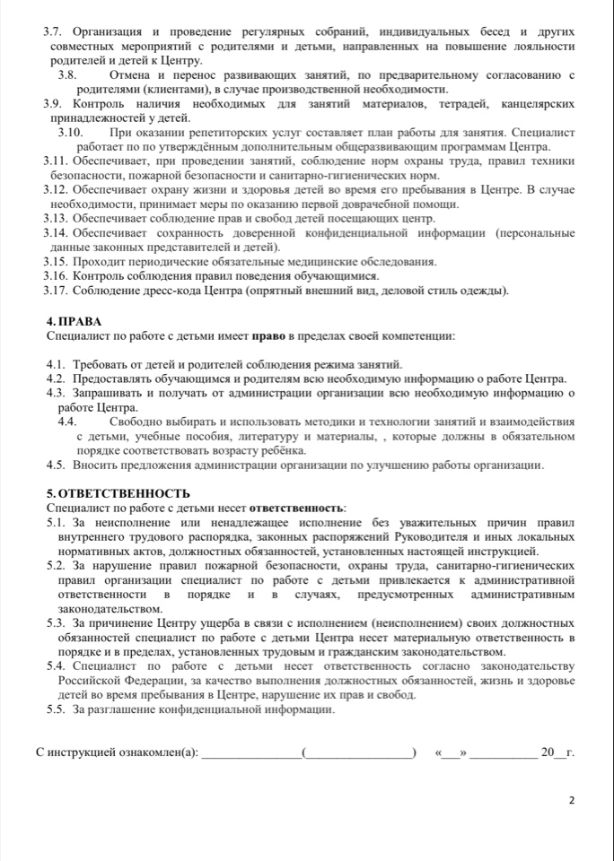 Должностная инструкция